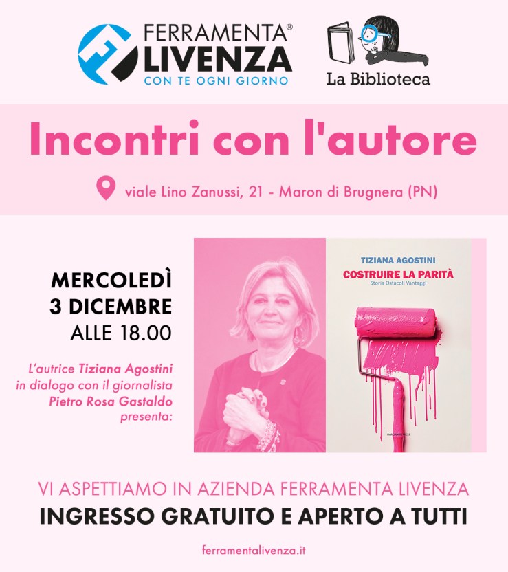 Ci vediamo mercoledì 3 dicembre alle 18.00, sempre in Ferramenta Livenza, con Tiziana Agostini e il suo “Costruire la parità ” per continuare il dibattito.